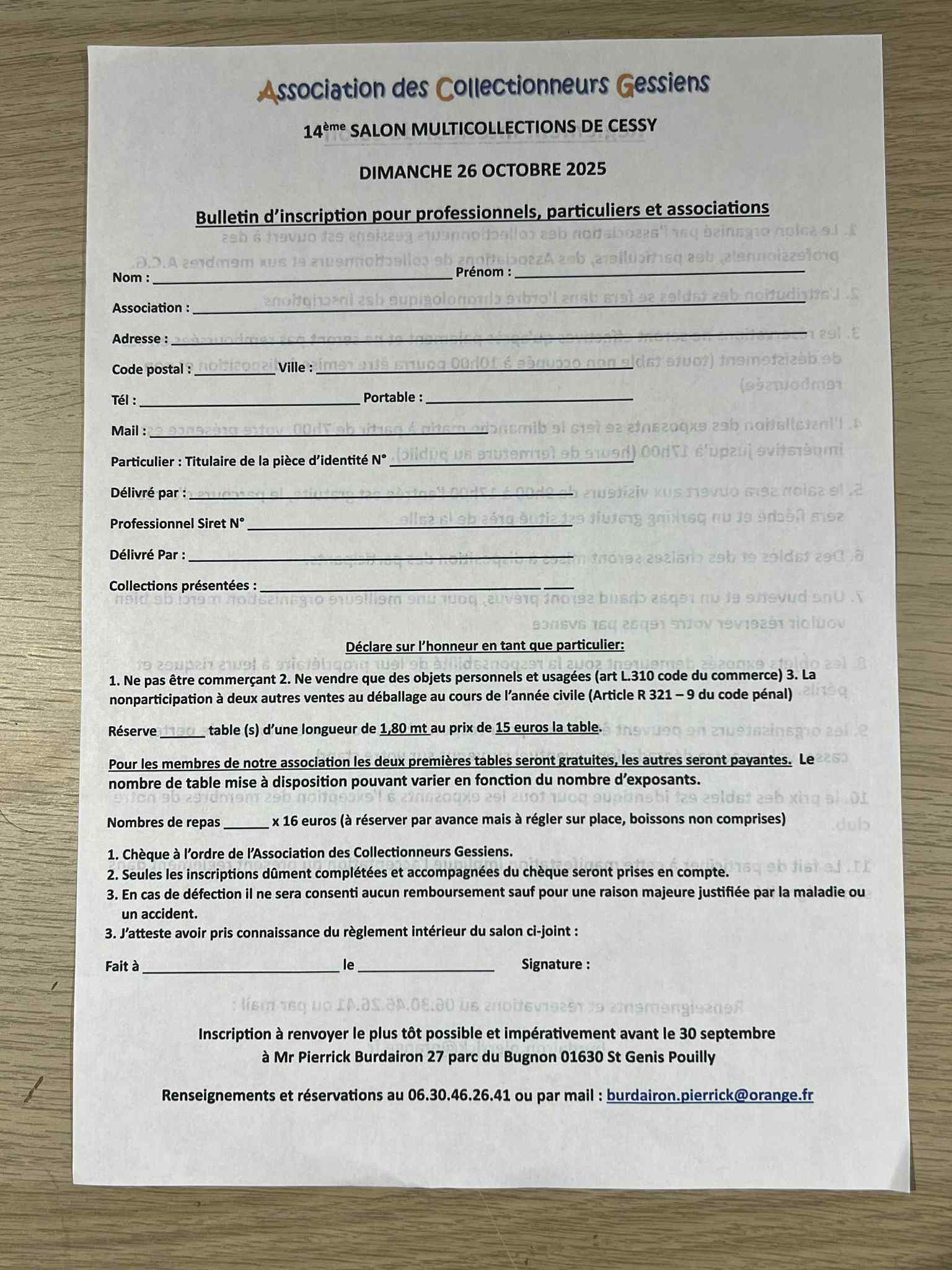 L' acg ( association des collectionneurs gessiens) organise sa 14 -ème grande bourse multi collection le dimanche 26 octobre 2025 organiser 1 fois par an dans la salle du vidolet a cessy (01170)