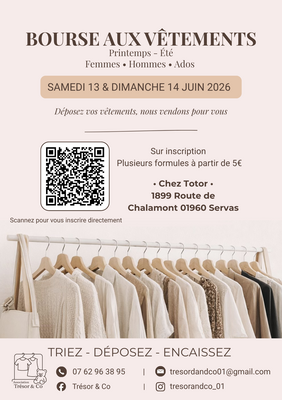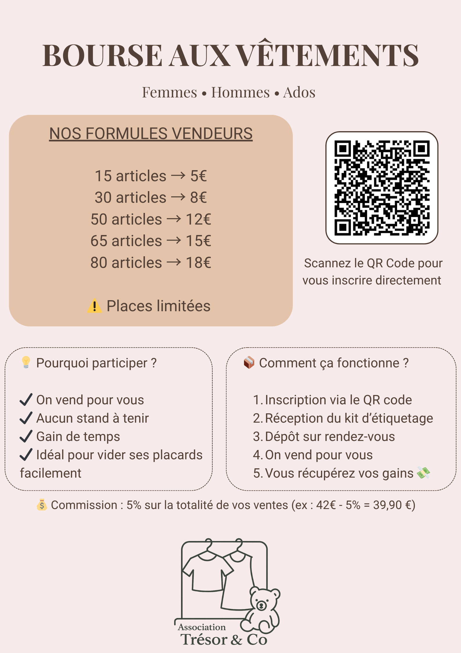 Bourse aux vêtements d’occasion printemps/été dédiée aux adultes et adolescents (13 ans et +).