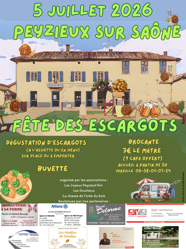 venez passer une journée conviviale et gourmande à l’occasion de la fête de l’escargot et de son vide-grenier !
