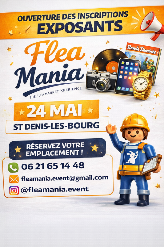 Flea mania est un grand vide-grenier / brocante organisé le dimanche 24 mai 2026 au foirail de la chambrière à saint-denis-les-bourg (01).