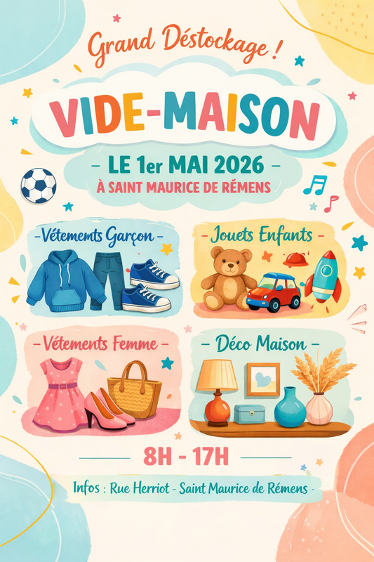 Je fais un vide maison le 1er mai a st maurice de rémens ! Vous y trouverez un peu de tout ! Je vous accueillerai avec grand plaisir chez moi !