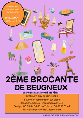 2 mètres gratuits pour les habitants de beugneux et wallée présents et exposants le jour de la brocante.