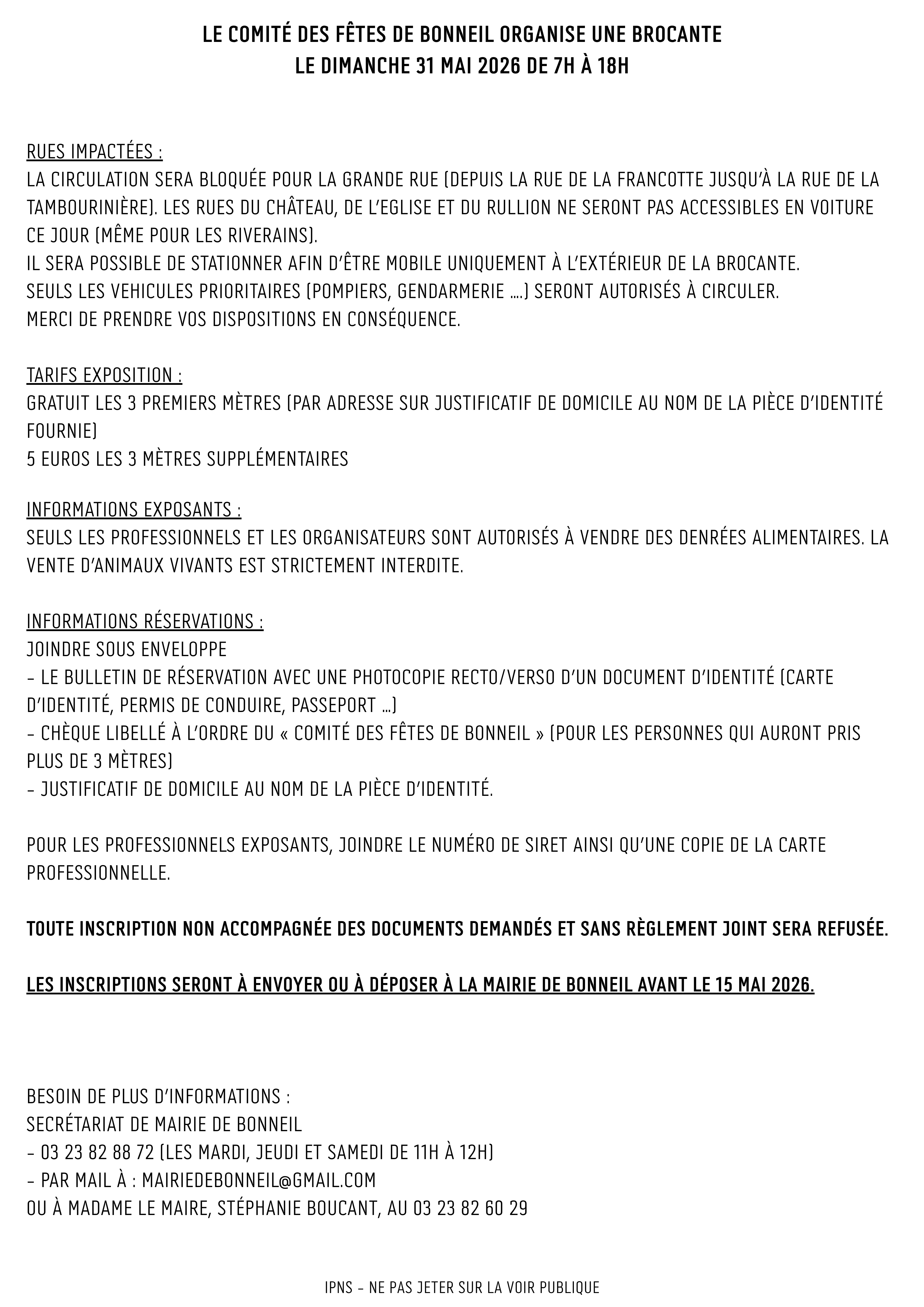 Rdv le 31 mai prochain pour l’édition 2026 de la notre brocante annuelle !
