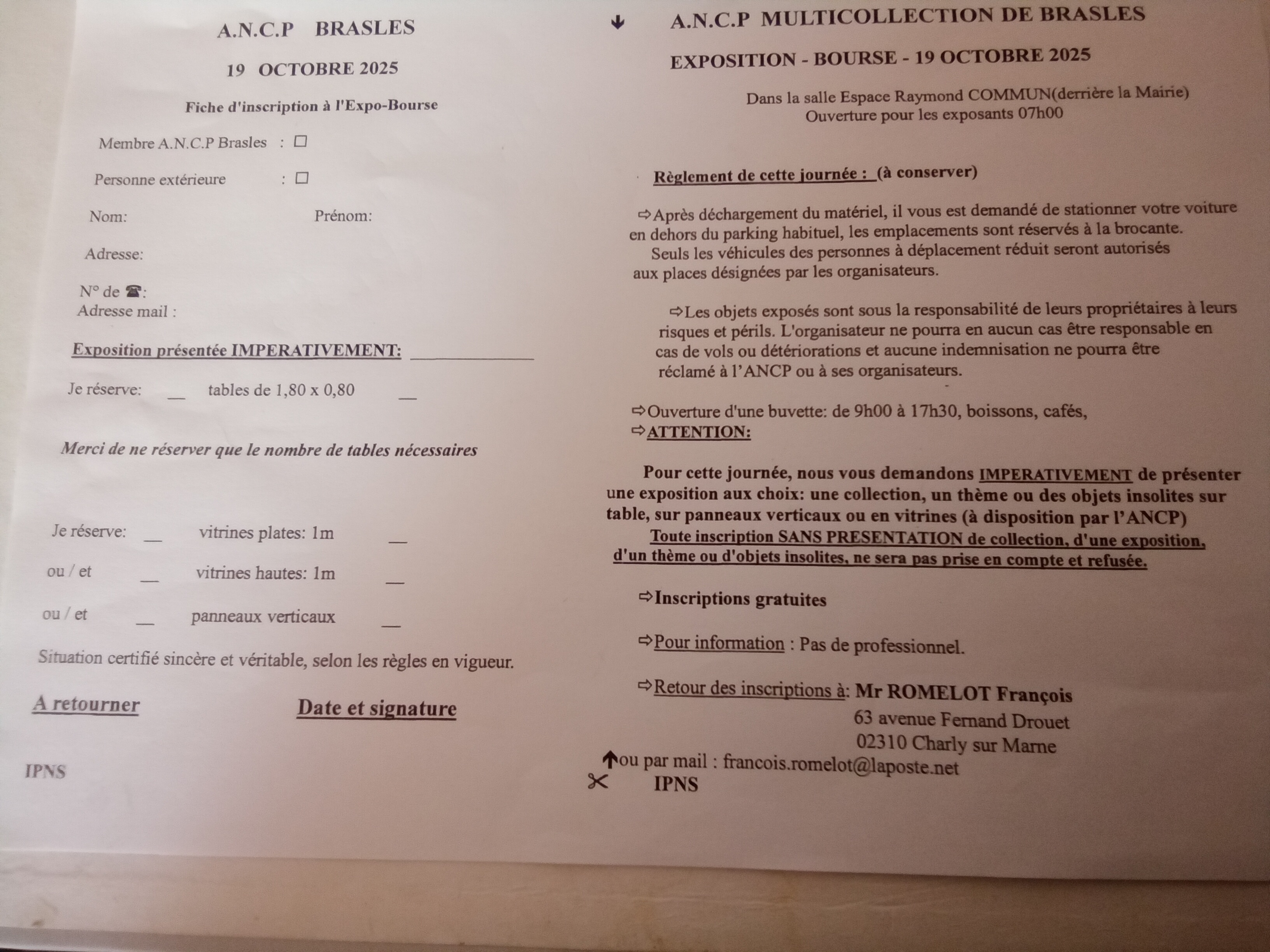 En prolongement de la brocante de brasles l’ancp multicollections sera dans la salle raymond commun en plus de la bourse vous pourrez admirer des expositions et objets insolites , venez discuter de votre et notre passion ou seulement regarder