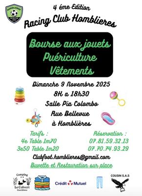 4 ème édition de notre bourses aux jouets puériculture et vêtements.