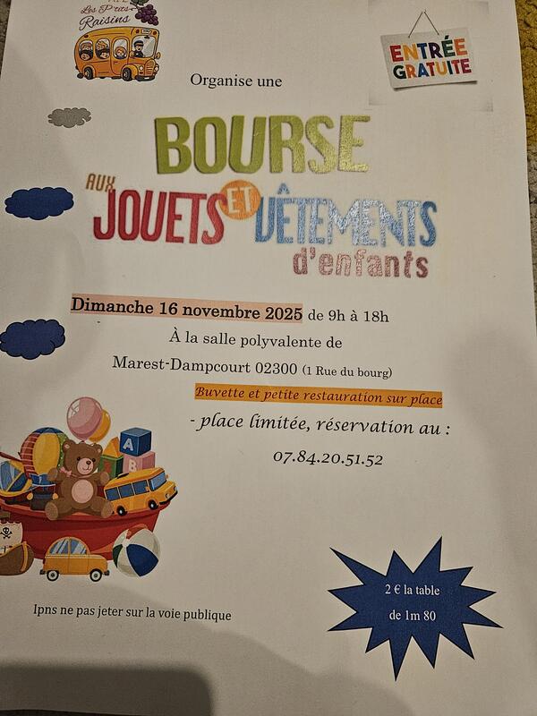 Ape les p'tits raisins organise une bourse aux jouets, puéricultures et vêtements d'enfants.