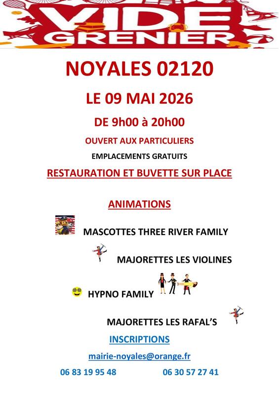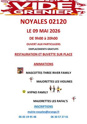 Grand vide grenier à noyale, le samedi 9 mai de 8h à18h ( pour les exposants, cela commence à 6 h), emplacement gratuit pour les particuliers comme professionnels