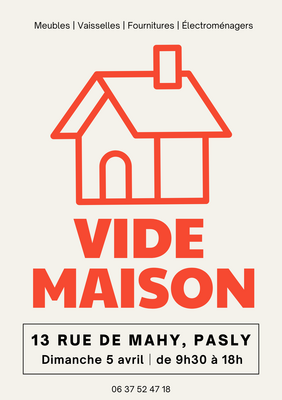 Un vide-maison aura lieu ce dimanche 5 avril 2026 à pasly, 13 rue de mahy de 9h30 à 18h !