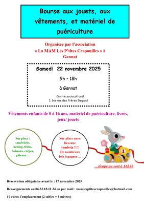 Bourse aux jouets, aux vêtements et matériel de puériculture