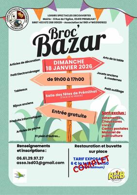Le broc’bazar de prémilhat se tiendra le dimanche 18 janvier 2026, de 9 heures à 17 heures, à la salle des fêtes de la commune. Cette journée sera l’occasion pour les visiteurs de venir chiner, découvrir de nombreux objets et faire de bonnes affaires dans une ambiance conviviale et chaleureuse. De nombreux exposants proposeront une grande variété d’articles tels que des objets du quotidien, de la décoration, de la vaisselle, des petits outillages et bien d’autres trouvailles originales.