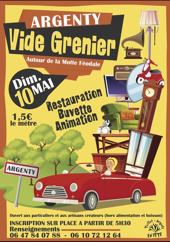 Brocante annuelle à argenty située autour de la motte féodale, organisée par teillet-argenty en fête