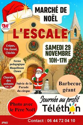 Cette année le marché de noël à l'escale au profit du téléthon aura lieu le samedi 29 novembre à partir de 10h à 17h