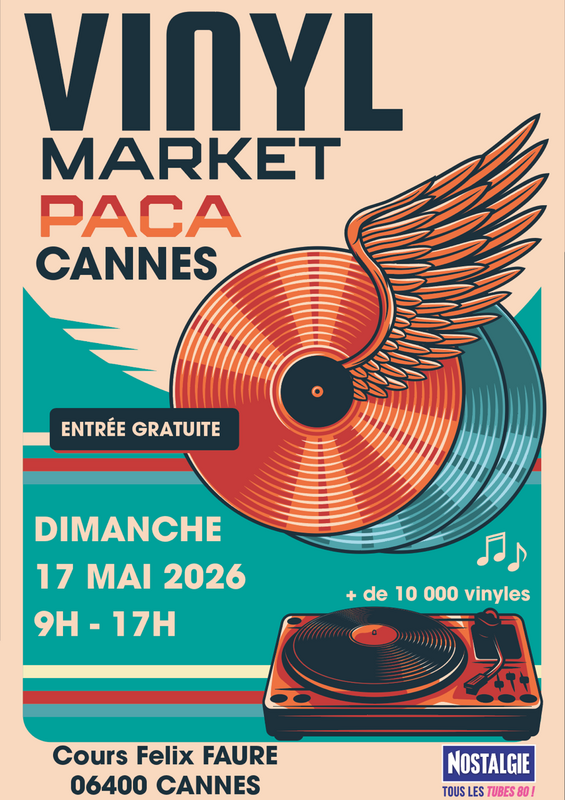 La brocante de cannes accueille les exposants du vinyl market paca, le dimanche 17 mai 2026, cours félix faure de 9h à 17h.