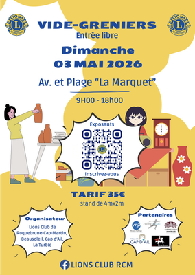Notre vide-grenier de cap d'ail est programmé au dimanche 03 mai 2026.