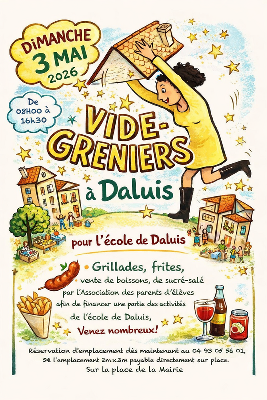 réservation des emplacements organisée par les parents de l’école de daluis pour financer les activités scolaires.