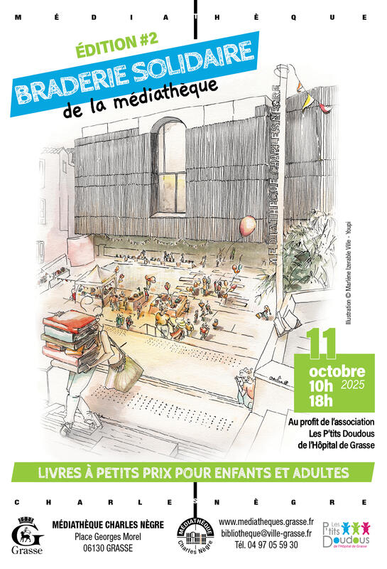 La médiathèque de grasse organise pour la deuxième année une braderie solidaire afin de donner une seconde vie aux livres sortis des collections. Fictions ou documentaires, livres pour la jeunesse ou pour les adultes, il y en a pour chacun et à petits prix (entre 0,50€ et 5€).