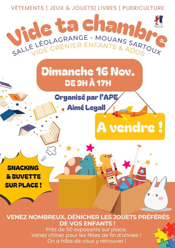 Cette année pour la première fois, l'ape aimé legall organise une braderie nommée « vide ta chambre » !