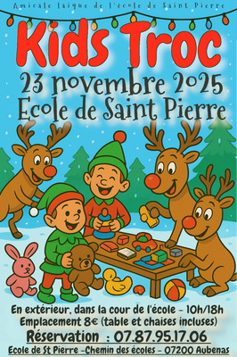 L’amicale laïque de l’école de saint pierre organise son grand kids troc, une bourse aux jouets, livres et jeux pour enfants, dans une ambiance de noël magique !