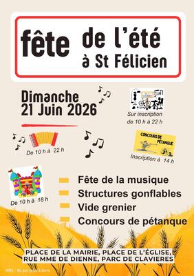 Le comité des fêtes de saint félicien organise la fête de l'été le 21 juin 2026.