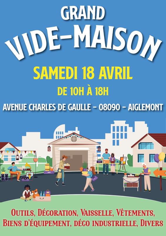 Rendez-vous samedi 18 avril de 10h à 18h pour un vide maison et vente au déballage sur accord de la mairie dans une maison située à aiglemont, avenue charles de gaulle secteur salle heinsen.