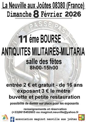 Maginot a la neuville aux joutes organise sa 8 ème bourse aux antiquités militaires-militaria le 08/02/2026.