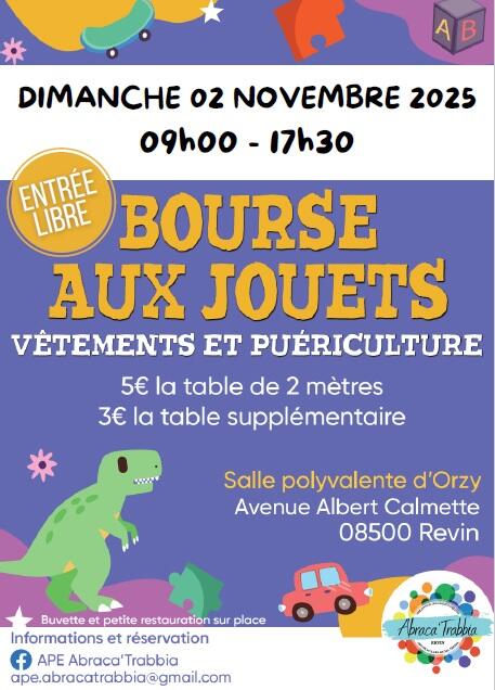 Lancement des inscriptions pour la 3ème édition de notre bourse aux jouets, vêtements et articles de puériculture ! La bourse affichait complet lors des 2 premières éditions, alors ne tardez pas pour vous inscrire ! Renseignements par mail : formulaire d'inscription en pièce jointe.