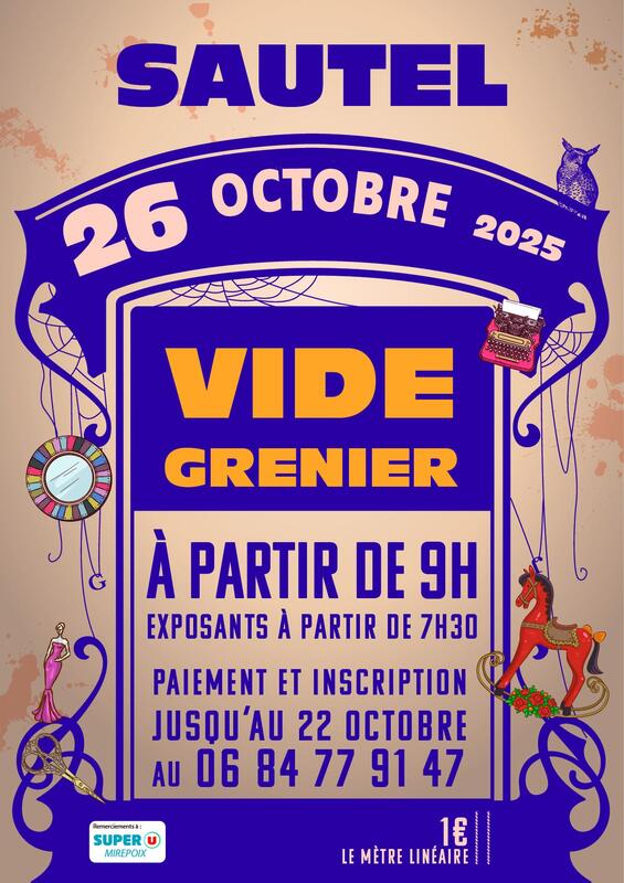 Rejoignez-nous le dimanche 20 octobre 2024 pour un vide-grenier à sautel (09300) !