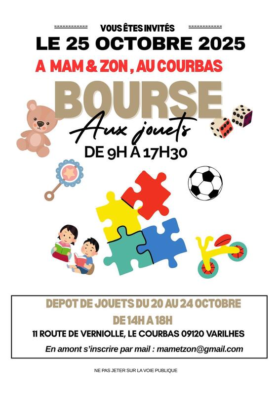 Dépôt des jouets du 20 au 24 octobre de 14h à 18h.