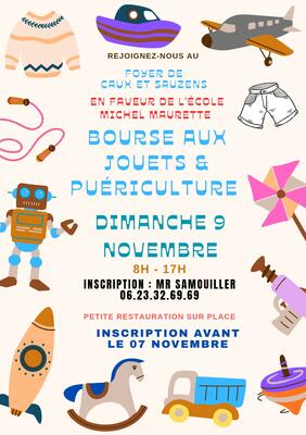 Une bourse aux jouets / puériculture (matériels, vêtements enfants ados) est organisée au profit des élèves de l’école michel maurette de caux-et-sauzens représentés par l’association occe11. L’objectif est de générer des fonds qui seront utilisés par l’école