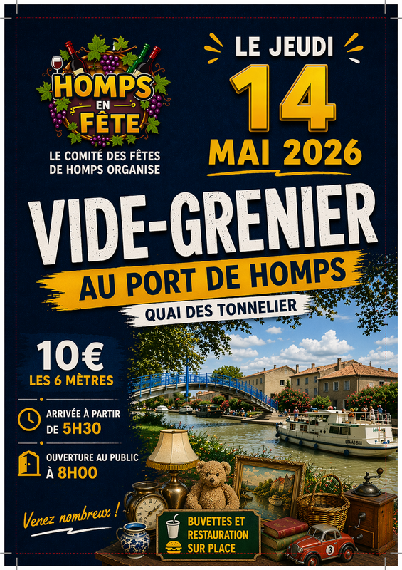 Le jeudi 14 mai 2026, ne manquez pas le vide-grenier organisé par le comité des fêtes de homps !