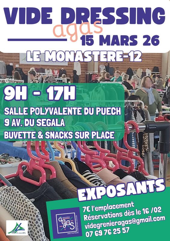 Envie de renouveler votre garde-robe à petits prix ? Le vide dressing de l’agas vous accueille avec 110 stands de vêtements, accessoires de mode et bijoux : de bonnes affaires pour tous les styles ! Accueil du public : de 9h à 17h restauration rapide sur place entrée libre et gratuite.
