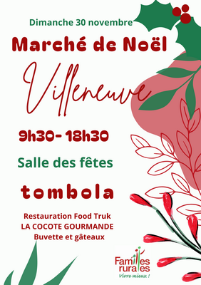 Pour sa 19 -ème année, l'association de familles rurales organise le dimanche 30 novembre le marché de noël avec 40 exposants et animations pour les enfants, tombola. Restauration avec un food truck, buvette et pâtisseries