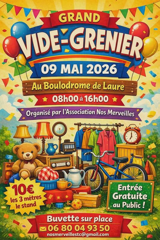 Le vide grenier se déroulera le 9 mai au boulodrome de laure à partir de 08h00.