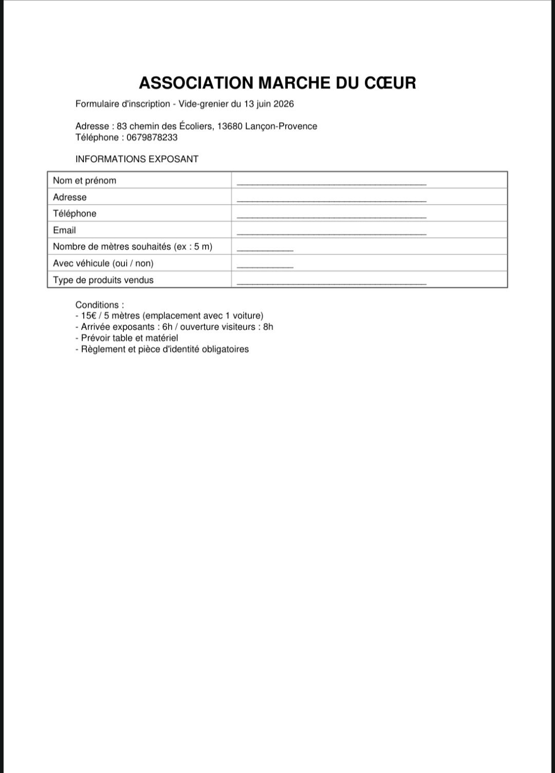 l’association marche du cœur organise un vide-grenier :