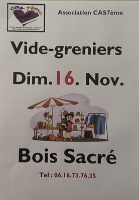 L'association cas7ème, a le plaisir de vous inviter, à venir découvrir notre fantastique vide-greniers dimanche 16 novembre ! Adresse rue du bois sacré 13006 marseille