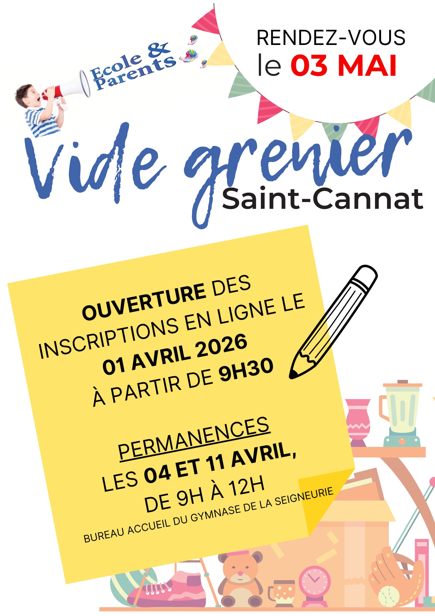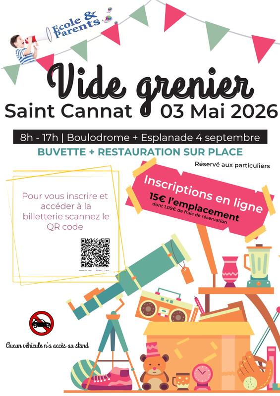 Dans une ambiance conviviale et familiale, venez vendre vos objets inutilisés. Votre participation permet à l'association ecole et parents de verser des fonds aux ecoles (maternelle et primaire) de st cannat pour soutenir les projets pédagogiques et financer du matériel pour nos enfants.