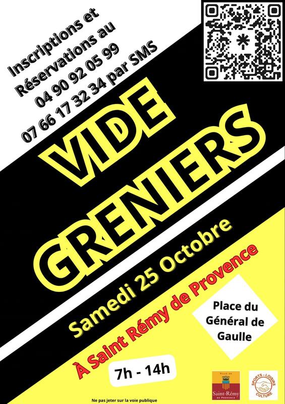 Ouverture à partir de 7h pour les exposants et 8h pour les visiteurs jusqu’à 13h. Vous devez avoir libéré la place pour 14h. Pour s'inscrire, communiquer par mail, téléphone ou directement sur place à l'association sports loisirs culture, place du général de gaulle, 13210 saint rémy de provence : votre nom, prénom, numéro de téléphone ainsi que le nombre de place souhaité. Vous pouvez envoyer votre demande d'inscription par sms. Penser à avoir sur vous la photocopie de votre carte d'identité ainsi qu'un règlement de 15€ par emplacement, paiement, soit par chèque à l'ordre de l'association sports loisirs et culture, soit en espèce.