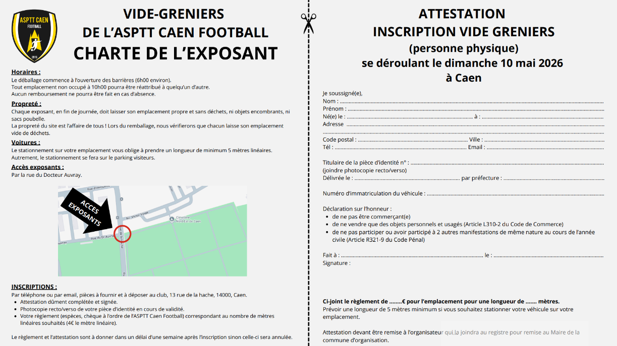 L'asptt caen football organise un vide greniers le dimanche 10 mai 2026 sur l'avenue victor vindé et la rue de la hache à caen.