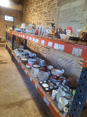 vaisselle, bibelots, décoration, cadres, bijoux fantaisie, vêtements (dont femmes grandes tailles), jouets, outils bricolage et jardinage, meubles, livres, cd, dvd, ustensiles de cuisine, etc ...