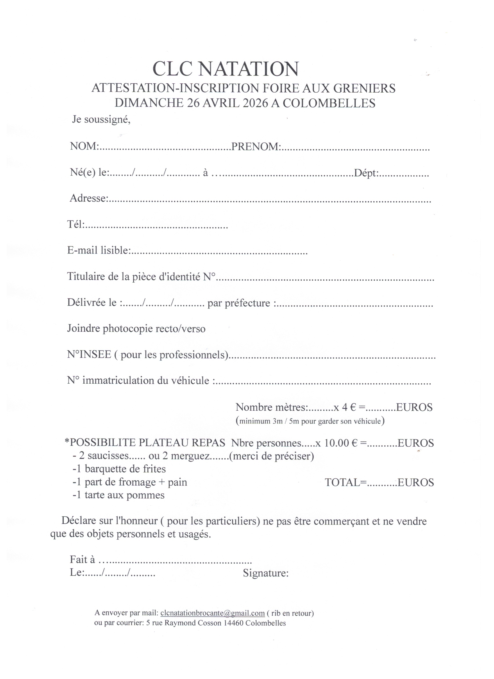 ••• 7ème foire aux greniers clc natation