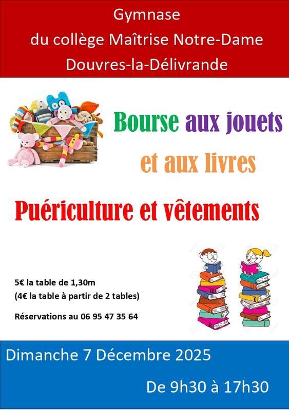 Bourse aux jouets, vêtements et puériculture dans le gymnase (chauffé) du collège maîtrise notre-dame.