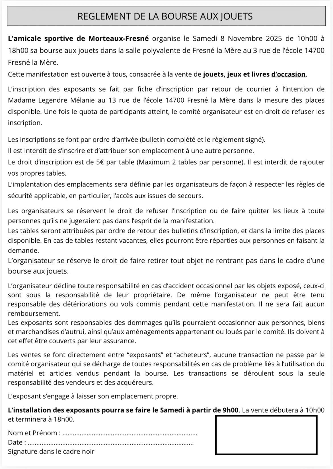 le samedi 8 novembre, le club de morteaux organise sa bourse aux jouets !