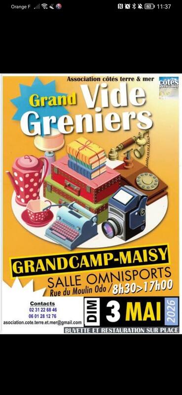 Brocante vide grenier salle omnisports de grandcamp maisy parking gratuit , buvette et petite restauration sur place