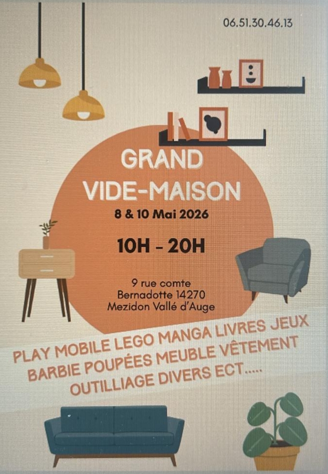 Il y aura aussi de l'outillage, une pergola de la vaisselle, petit mobilier chambre à coucher etc ..