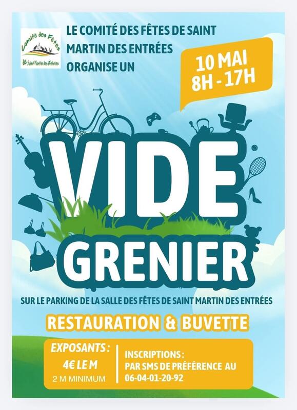 Vide grenier organisé par le comité des fêtes de saint martin des entrées. Restauration sur place