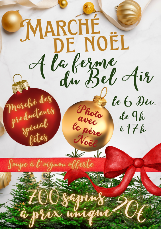 Au programme : dégustation gratuite de soupe à l'oignon, photo avec le père noël, atelier feutrine, marché de produits locaux "spécial fêtes", décorations de noël sans oublier les sapins au prix unique de 20 €