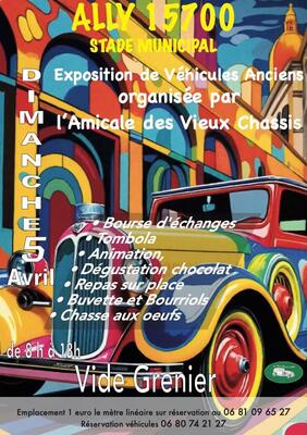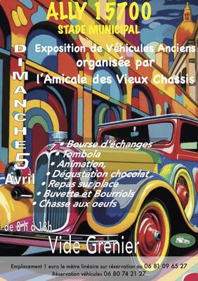 Exposition voitures , motos , tracteurs anciens avec un grand vide genier .Restauration sur place . Animations pour les enfants