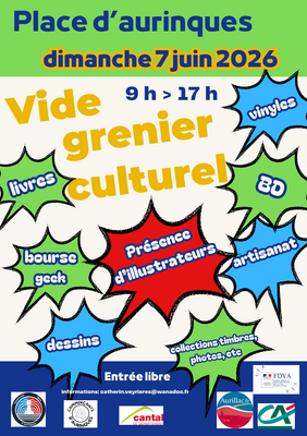 Vide grenier culturel avec vente d'objets culturels ( livres, bd, vinyles, jeux,.....), vente d'objets artisanaux, ou artistiques ou geek.