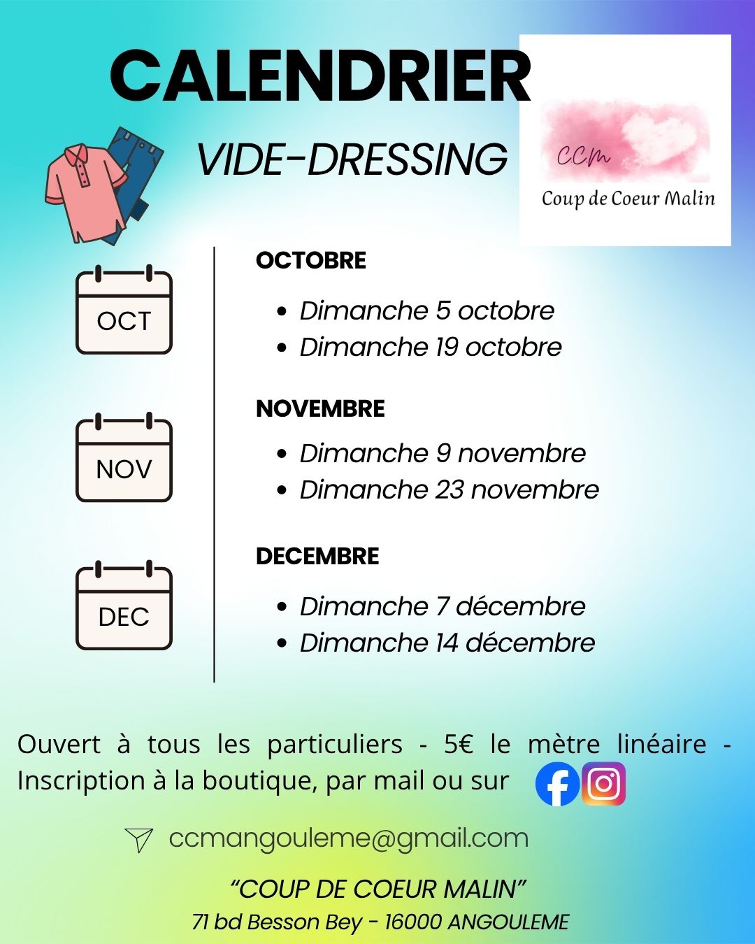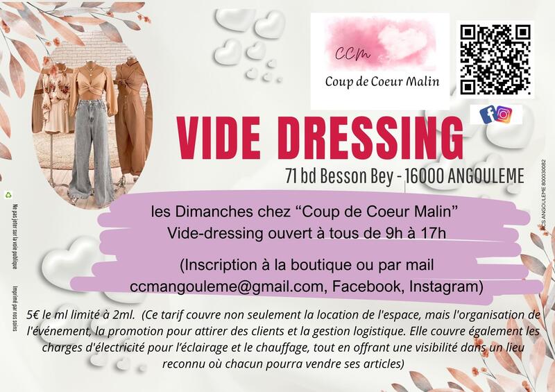 Vide dressing dans les locaux de la friperie "coup de coeur malin" - 71 bd besson bey - 16000 angouleme