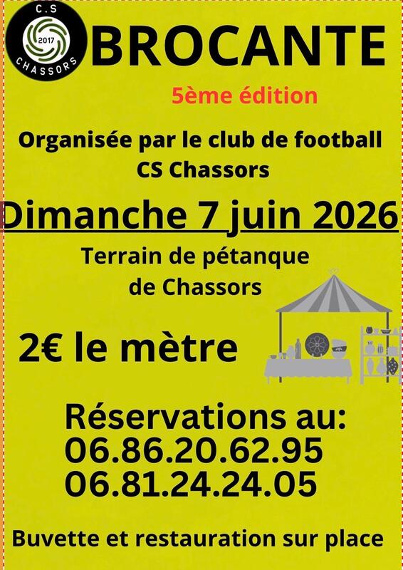 nous organisons notre 5eme brocante le dimanche 7 juin sur le terrain de pétanque de chassors lieu dit luchac route de jarnac
